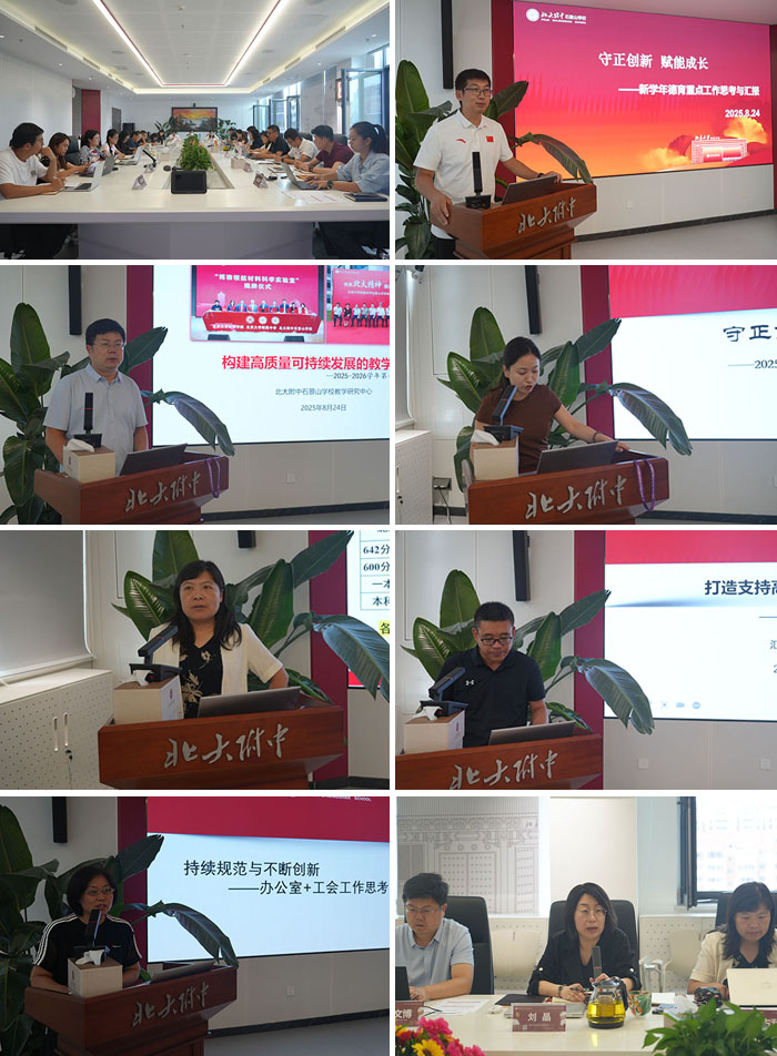 8月27日,学校以“十载育英结硕果,今朝聚力拓新程”召开教职工大会。会上,北京大学副教务长、北京大学附属中学校长马玉国以《从未名湖到大泥湾》为题讲座,回顾北大精神与附中发展历程,强调“人为本、德为先、业于精”理念,鼓励教师以“四有”标准担使命。北大附中石景山学校书记刘晶围绕“守正笃行,继往开来”部署工作,明确将从德育强化与教学提质两大核心维度发力,以课堂深耕为重要抓手,全面提升育人水平。