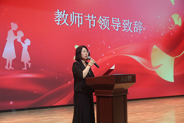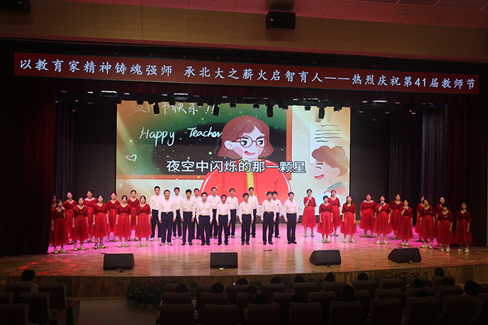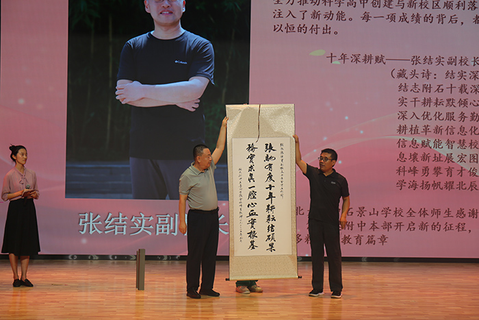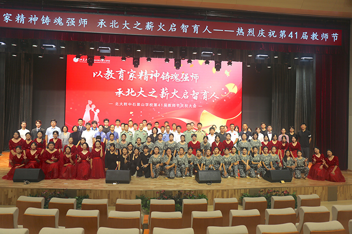 活动尾声,主持人共同回顾盛典历程,再次祝愿全体教师节日快乐,并号召全体北大附石人以建校十周年为新起点,牢记