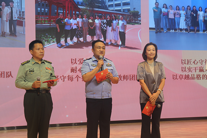 在先进团队表彰环节,三年级团队、初三年级团队和高三年级团队凭借扎实的育人成效与协作精神获誉,特邀嘉宾们为团队宣读颁奖词。随后,教师代表分别分享育人经验,从课程创新到毕业年级攻坚,从团队协作到学生成长,真挚讲述中尽显教育工作者的智慧与温度。