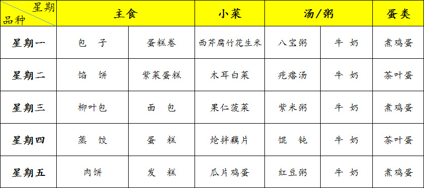北大附中石景山学校西黄村校区中学早餐2025年9月22日-2025年9月26日