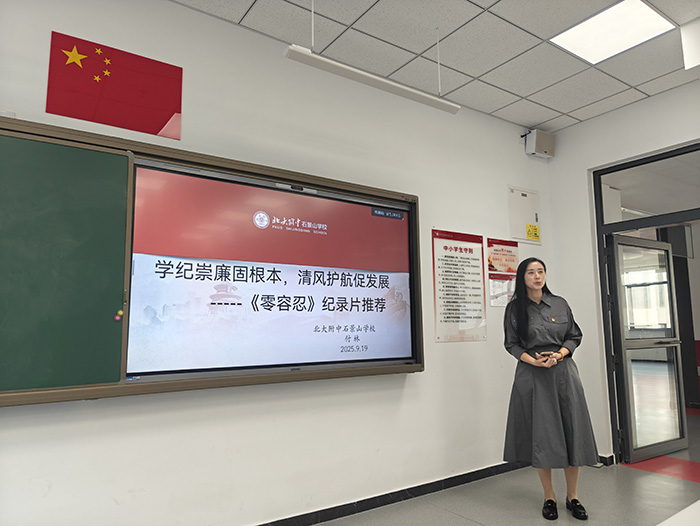 为进一步加强党员纪律教育,筑牢廉洁从教思想防线,2025年9月19日,北大附中石景山学校第三党支部在政治专业教室组织召开以“学纪崇廉固根本
