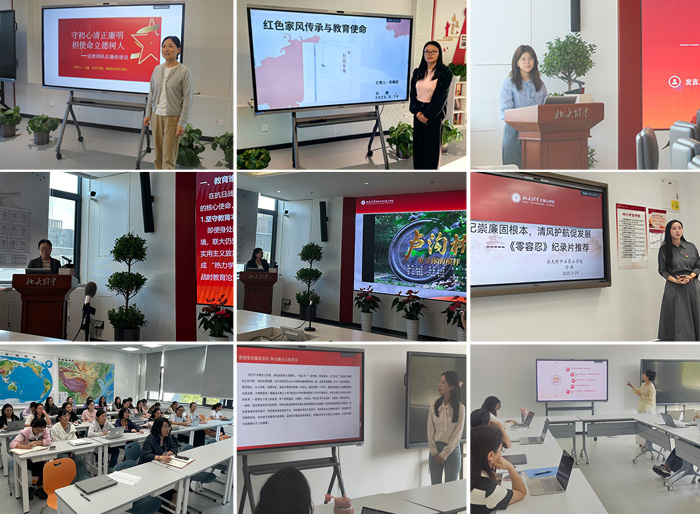 四、党员教师微党课分享。各党支部老师以多维度进行微党课内容的分享学习,从优质书籍《独领风骚——毛泽东心路解读》的推荐,到《习近平谈治国理政》第五卷核心内容的解读,再到中央纪委国家监委宣传部与中央广播电视总台央视联合摄制五集电视专题片《零容忍》纪录片的观后感分享,推动理论学习转化为育人动力。