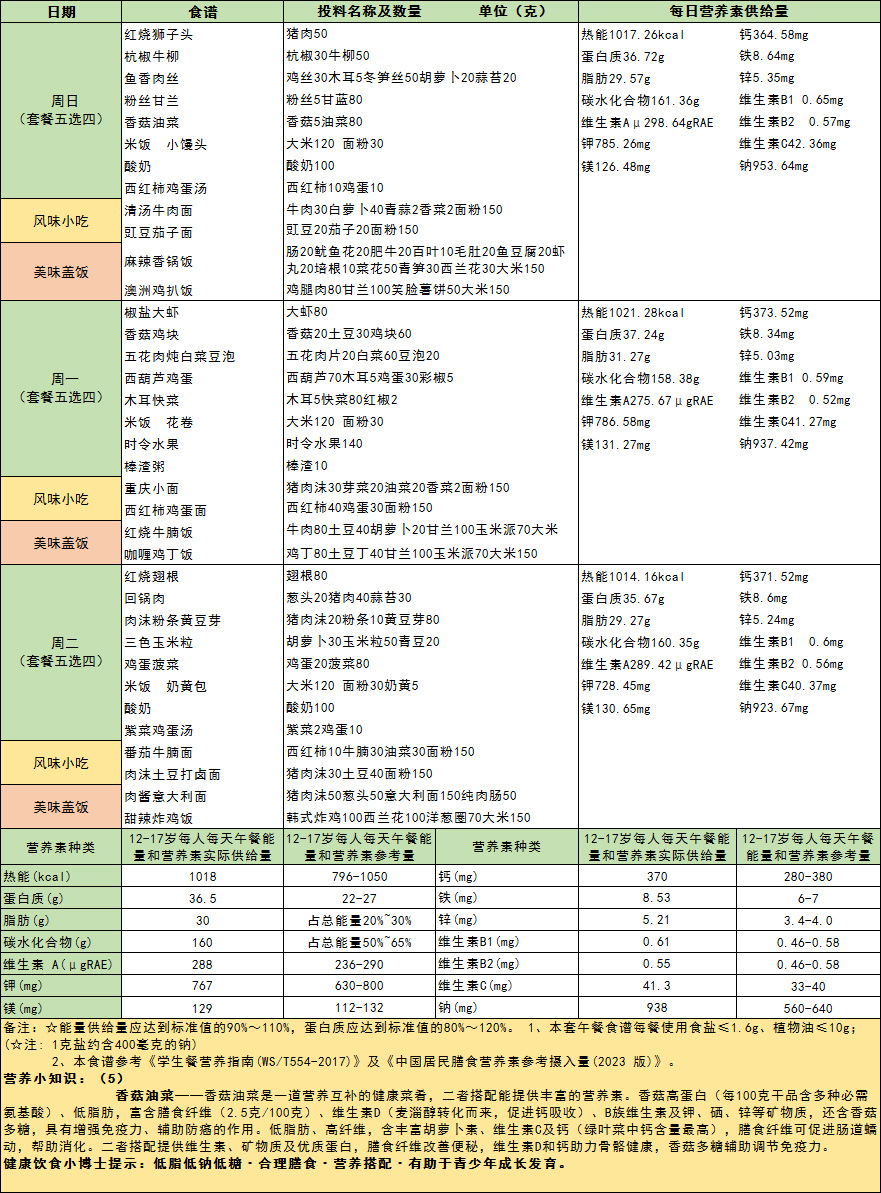 北大附中石景山学校西黄村校区中学午餐食谱(2025.9.28-2025.9.30)