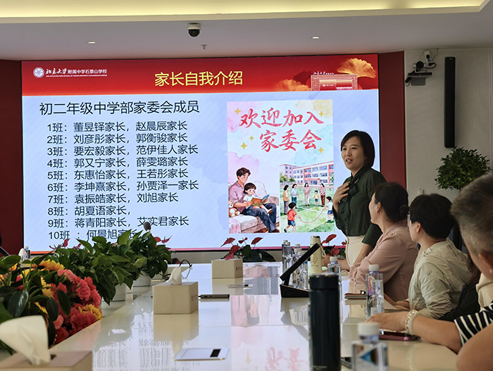 为了架起学校与家庭之间的“桥梁”,积极开展家校协同育人,北大附中石景山学校中学部初二年级第一次家委会见面会于9月26日下午正式召开。本次活动刘亚慧副校长出席,年级组长章老师主持。