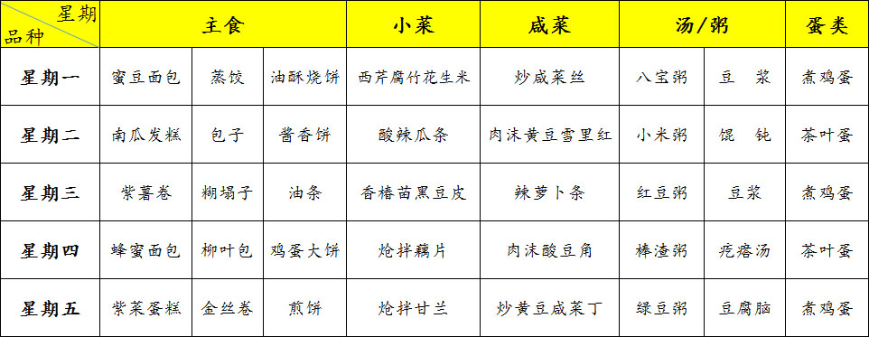 北大附中石景山学校西黄村校区中学早餐2025年10月13日-2025年10月17日