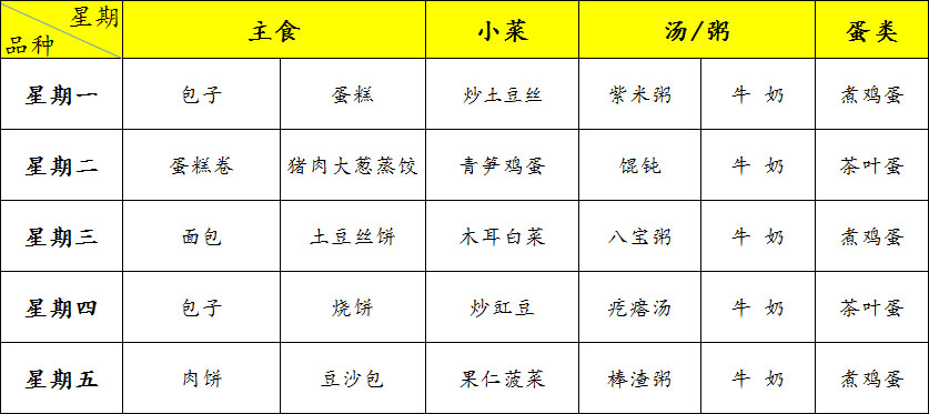 北大附中石景山学校西黄村校区小学早餐2025年10月20日-2025年10月24日
