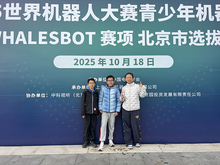 2025年10月18日,WRCT2025世界机器人大赛青少年设计大赛WHALESBOT赛项北京市选拔赛在延庆世园会成功举行。本次大赛吸引了全市众多中小学生同场竞技,我校派出的参赛队伍在比赛中团结协作、沉着应战,凭借出色的创新设计和稳定的临场发挥,在激烈的竞争中展现了北大附中石景山学校学生的优秀风采。