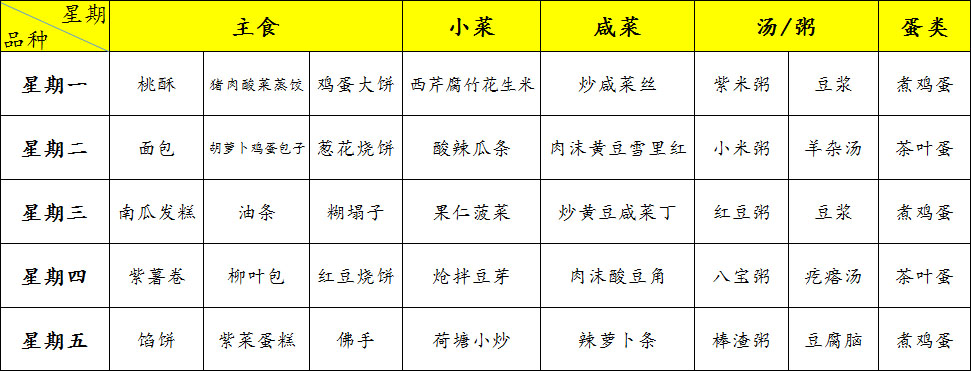 北大附中石景山学校西黄村校区中学早餐2025年10月27日-2025年10月31日