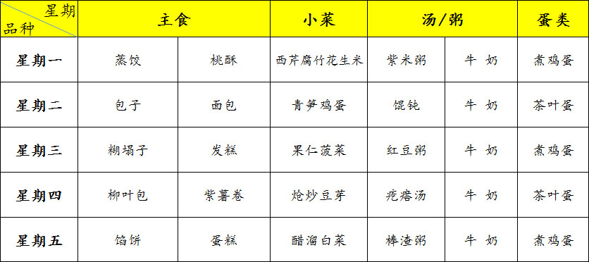 北大附中石景山学校西黄村校区小学早餐2025年10月27日-2025年10月31日