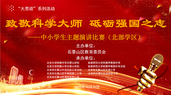 为深入贯彻习近平总书记重要讲话精神,促进教育科技人才高质量发展,弘扬科学家精神,推动思政教育与科学教育深度融合。10月24日下午,北京市石景山区北部学区2025年“致敬科学大师