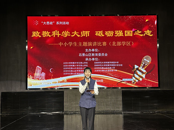 活动中,同学们通过声情并茂的演讲与丰富的创意形式,讲述了现当代科学大师的感人故事与卓越贡献,展现了新时代青少年对科学精神的深刻理解与对科技报国理想的向往。随后,北大附中石景山学校副校长任欢迎发表讲话,区教委老师及各校负责人为获奖选手颁奖。