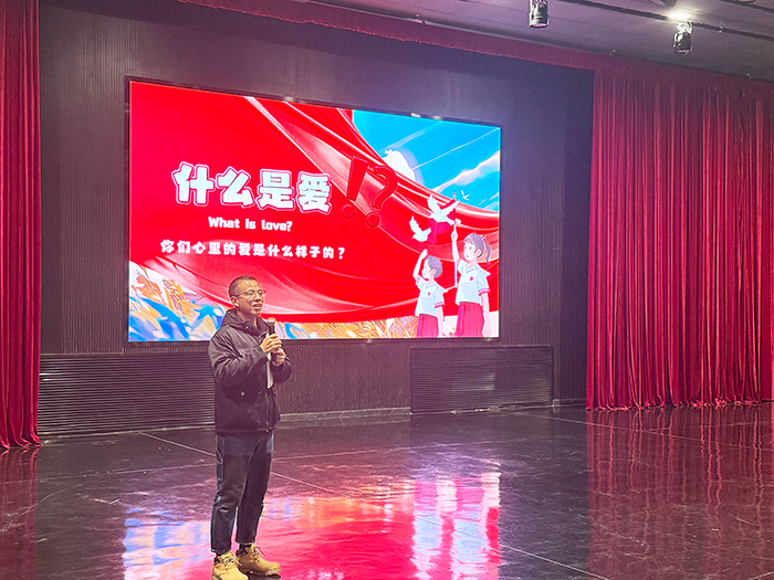 “你知道什么是爱吗?”家长以“小爱”为切入点展开分享。他先通过互动提问,邀请学生畅谈对“爱”的理解,从孩子的角度出发,更能引起学生的共鸣。再结合生活实例与视频,阐释“爱”的双重内涵