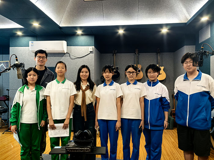 北京市教委《身心健康二十条》强调“以美育人、以文化人”,鼓励通过诗歌朗诵、戏剧展演等形式,厚植学生家国情怀。我校以此为契机,打破学科壁垒,由语文组与艺术组联合打造朗诵实践活动,将文本解读、语言表达与舞台表现深度融合,以一场跨越时空的朗诵《致未来的信》,带领学生用声音触摸历史、对话未来,最终登上北京广播电视台的演播舞台,展现新时代少年的精神风貌。
