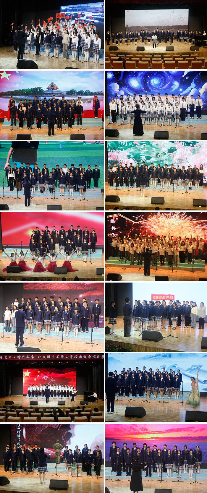 2025年10月27日下午,北大附中石景山学校报告厅内歌声飞扬、掌声雷动,“青春之声·时代华章”班级合唱比赛在此隆重举行。初二年级10个班与高二年级4个班全员参与,用青春的歌声诠释时代精神,呈现了一场高水准、充满感染力的艺术盛宴。