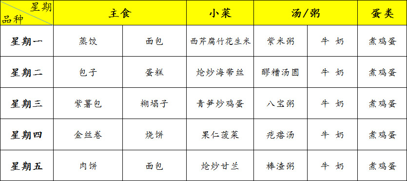 北大附中石景山学校西黄村校区小学早餐2025年11月3日-2025年11月7日