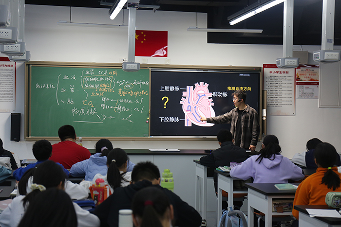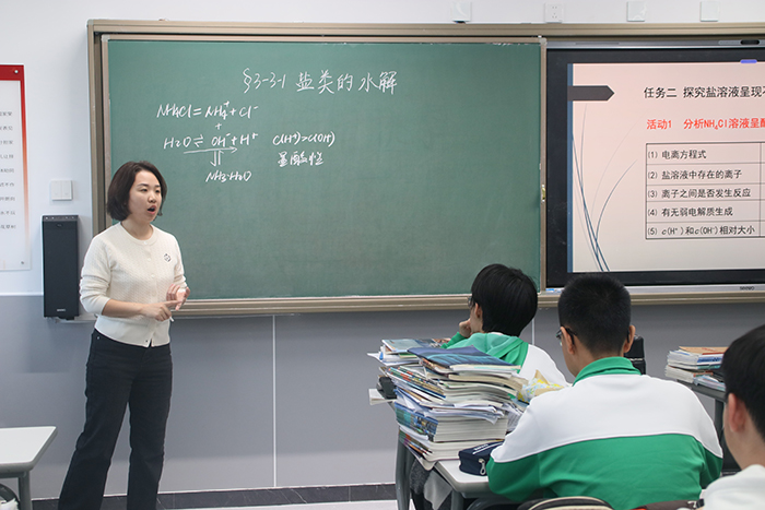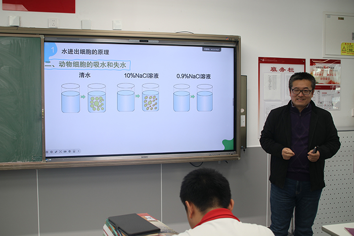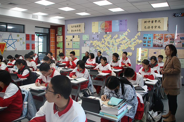 在随堂听课环节,调研人员走进高一、高二课堂,现场聆听周艳霞、靳鹏等教师讲授的数学、生物课程,对学校“以问题驱动探究、以实验深化理解”的教学模式给予好评,认为课堂真正实现“知识传授与科学思维培养的深度融合”;而高二走班制下的历史、化学课程,更凸显学校“尊重学生差异、助力个性发展”的科学育人理念。