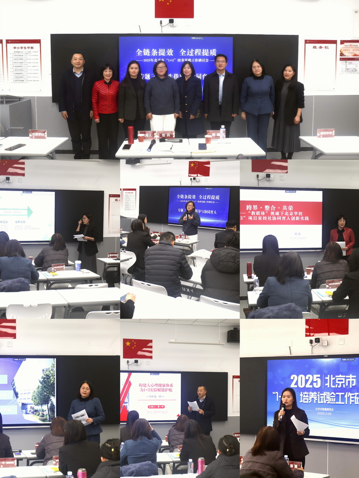 11月26日,以“全链条提效,全过程提质”为主题的2025年北京市“1+3”培养实验工作研讨会在我校西黄村校区成功举办。市教委基教二处(教材处)处长、二级巡视员聂荣,副处长向姣姣;石景山区委教育工委副书记、区教委主任孟驰;市教科院课程中心副主任黄晓玲;中国教科院研究员杨清;人教社课程教材研究中心主任任长松;北师大副教授郑葳;首师大教育学院院长、教授张爽以及全市各区教委、项目学校代表等两百余人齐聚一堂,共商首都教育高质量发展大计。此次高规格会议在我校举办,既是对学校“1+3”实验项目实践培养成果及石景区教育改革成果的肯定,也为我们提供了宝贵的交流学习平台。
