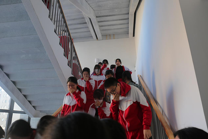 全体师生员工疏散到操场后,任欢迎副校长进行了疏散演练总结。今天,我们全体师生员工进行了一次严肃、认真、快速的消防安全疏散演习。在刚才的演习过程中,警报响起后,绝大多数同学能够按照预定的疏散路线,在老师的指挥下,紧张、有序、迅速地撤离到指定安全区域。整个过程用时2分45秒,基本达到了我们预期的演习效果。同时,我们更要清醒地认识到,这毕竟是一次演习,它与真实火场千钧一发的危机情境仍有差距。同学们,生命无法重来,安全不能等待。学校之所以不惜停下一节宝贵的课程,组织这样大规模的演习,其价值和意义究竟何在?