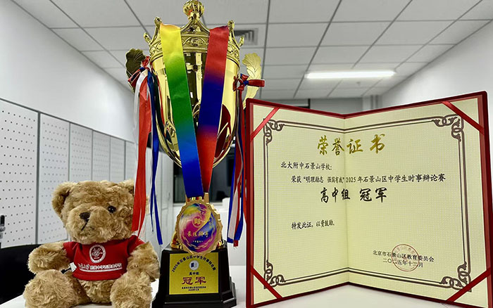 12月5日下午,“明理励志 强国有我”2025年石景山区中学生时事辩论赛决赛落下帷幕。北大附中石景山学校辩论队凭借扎实的论点、默契的配合与出色的临场发挥,从全区8所高中校中脱颖而出,勇夺高中组冠军,为这场历时两个月的思辨之旅画上了圆满句号。