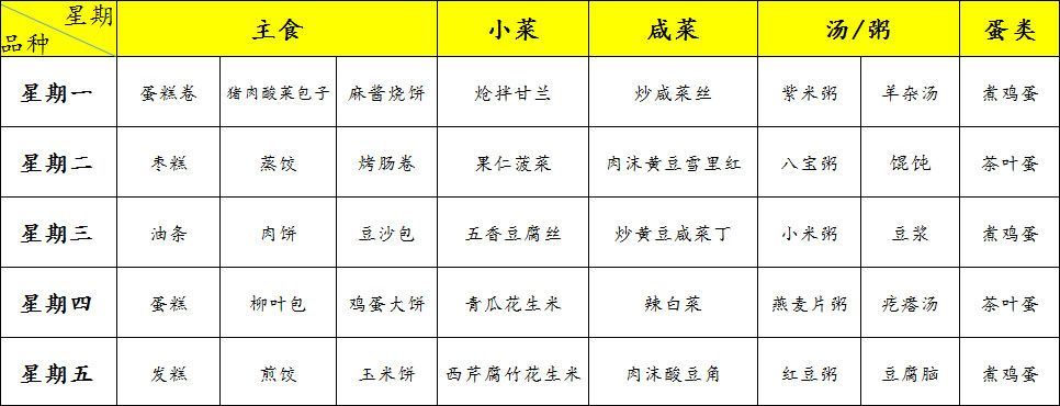 北大附中石景山学校西黄村校区中学早餐2025年12月8日-2025年12月12日