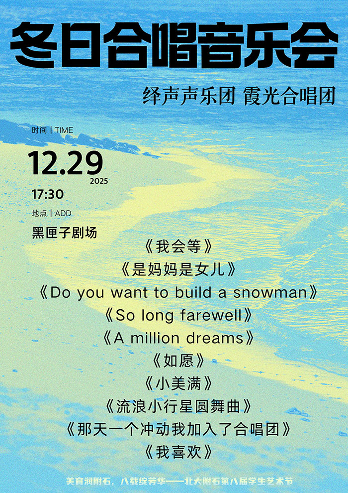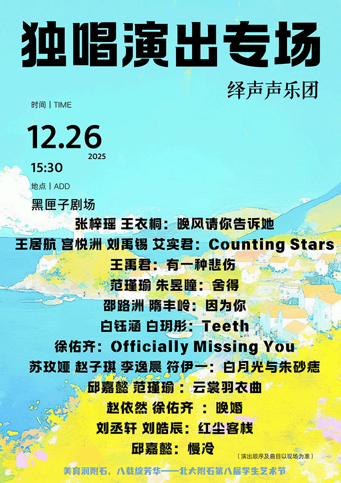 这是艺术节的压轴华章。合唱团的同学们将以多声部的和谐共鸣,唱响经典与创新之作,用最纯粹的和声为第八届艺术节画上圆满的句号。