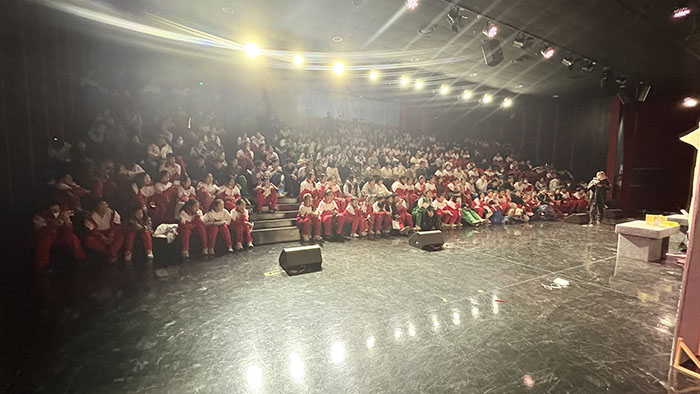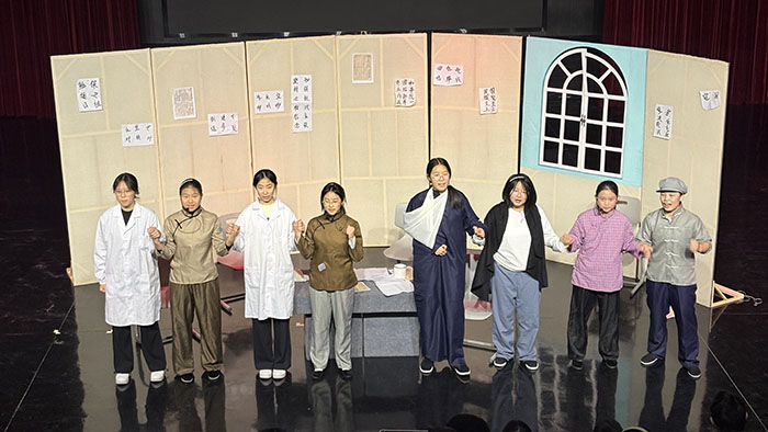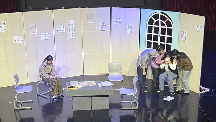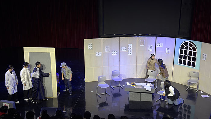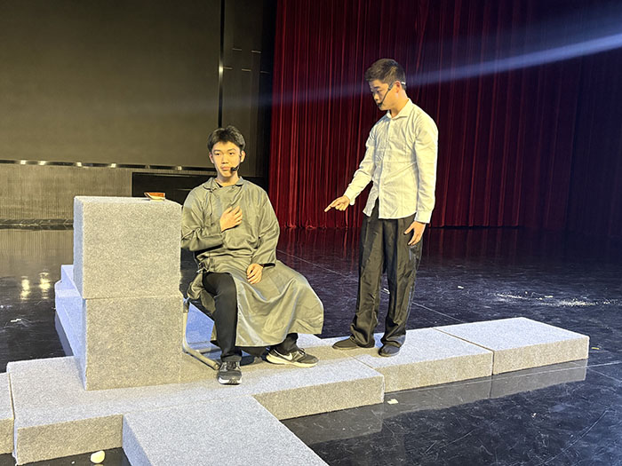 本场演出凝聚了戏剧社全体成员的创意与汗水,从筹备到呈现贯穿整个学期,学期初就制定好演出计划,学生团队以最终项目成果展示为导向。从剧本创作阶段的反复打磨,到走位排练的细节调整,同学们常常加练。初一、初二社员从初登舞台的紧张逐渐成长为能够从容把控表演节奏的“剧中人”,团队成员之间也形成了默契的协作关系;高零、高一的演员们则充分发挥了能力优势,为初中的同学做好表率,在完成自己的排练任务后主动帮助他们优化剧本和表演节奏。戏剧社长窦允谦在演出后感慨道:“这段日子,每一份努力都算数,每一次成长都清晰可见。”排练中,有人为一句台词反复揣摩,有人主动承担幕后工作,有人在瓶颈期组织集体讨论——大家凭着对舞台的共同热爱拧成一股绳,不仅在戏剧创作中提升了艺术素养、写作与时间管理能力,更收获了真挚的友谊与成长的喜悦。