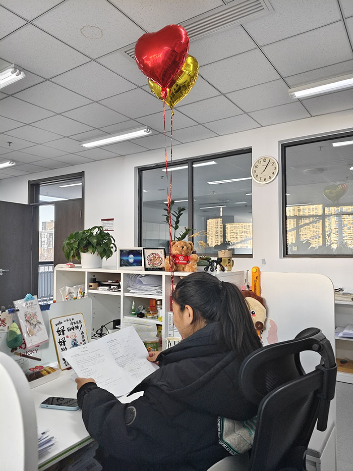 在工会主席韩鹰老师的带领下,工会委员与小组长们依次走入老师们的办公室。目光所及,皆是欣然:桌面整洁,书籍文件井然有序;绿植生机盎然,吐露芬芳;更有老师们亲手张贴的窗花、悬挂的气球,以及写满祝福的贺卡,将新年期盼点缀在每一个角落。处处流露着用心与巧思,洋溢着家的温暖与节日的喜悦。