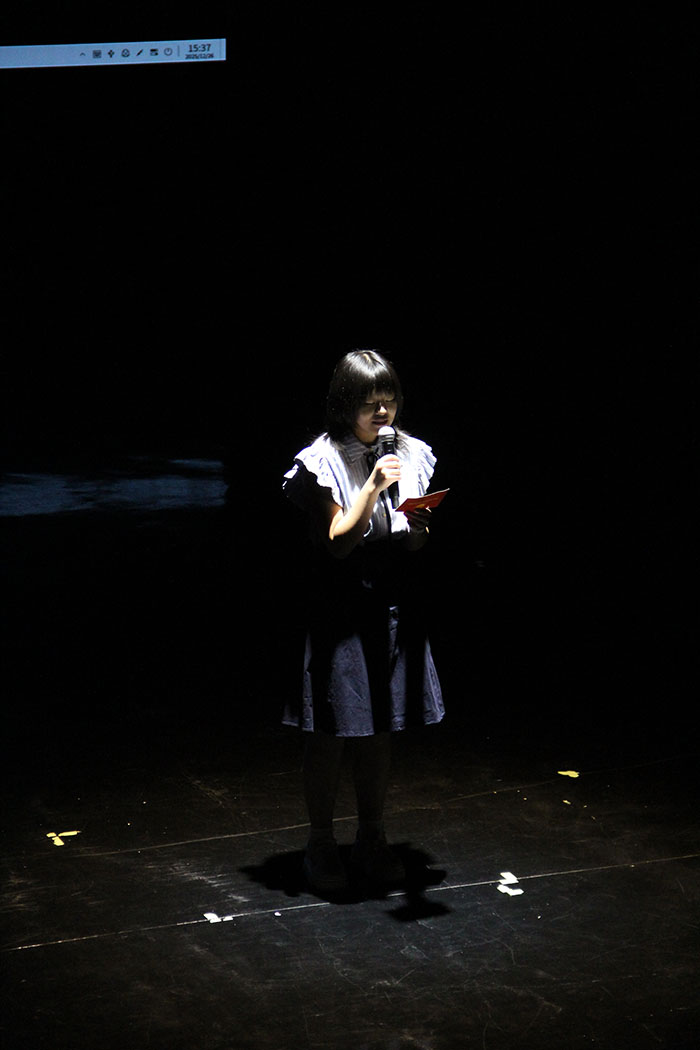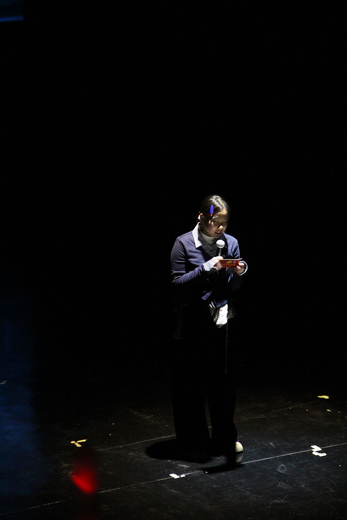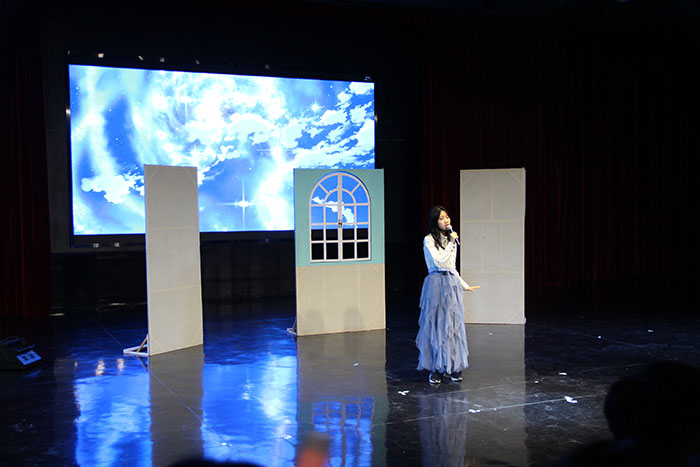 音乐会创新性地引入了“歌曲导赏”环节。每组演唱者会为其他同学演唱组曲目进行简要介绍,分享他们对歌曲的理解、创作背景分析以及表演设计的思考。这种“学生互为导赏人”的设计,打破了传统音乐会报幕的模式。介绍者以朋友的视角,向到场观众说出自己对音乐的理解,引得观众们一起思考,传递感受,本身音乐无标准答案,这样的心流互动,更是对音乐个性、充满想象力的交流。