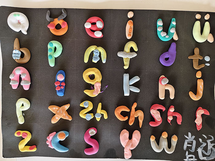 为了让大家更扎实地掌握拼音,我们还举办了“拼音彩泥制作活动”。在动手创作的过程中,孩子们不仅记住了拼音的形状,还牢牢掌握了它们的发音,原来拼音学习可以这么好玩!