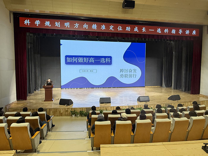 为帮助高一学生及家长科学规划选科方向,精准对接未来专业与职业发展,我校于校内报告厅举办了选科指导专题讲座。本次讲座邀请生涯规划资深专家主讲,高一年级全体学生及家长到场参与。