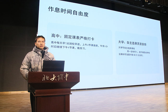孟云天在分享中也以自身经历为例,讲述了如何通过“兴趣驱动”将中学时的爱好转化为大学学习动力,利用假期培养“不以谋生为目的的爱好”,在过程中提升创新思维与解决问题的能力;以及如何在社团活动与学业之间找到平衡,为在场同学提供了“选择适合方向,持续付出努力”的生动范本。高零3班程烨同学在聆听分享后深有感触:“当学长分享将大学生活具象为一张张实践照片与一段段自主选择的故事时,我意识到,高中这方井然有序的‘围栏’即将打开,眼前展开的,是大学那片需要自己探索方向的旷野。”