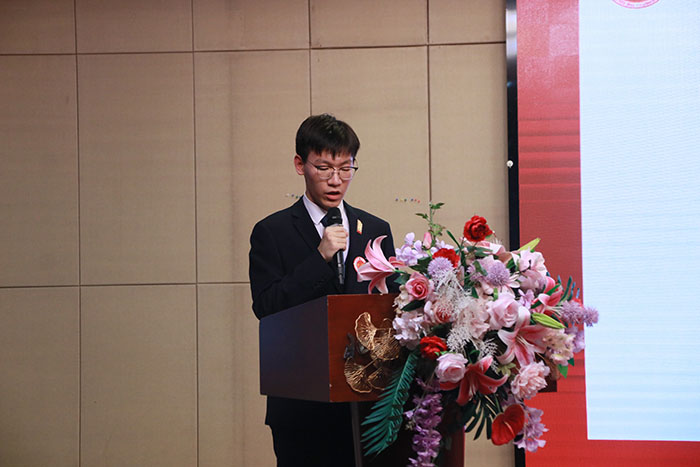 王浩宇同学作为学生代表发言,并与同学们相约:“待繁花盛开,我们顶峰相见”。
