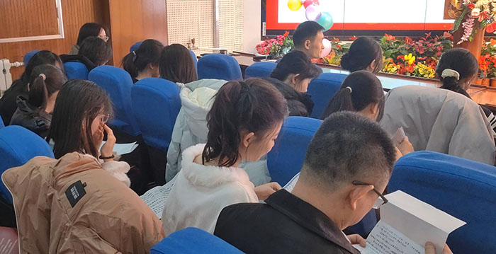 师恩如海,誓言如铁。接着北大附中石景山学校全体高三老师为同学们送上了最真挚的祝福。苏昕老师作为教师代表发言,她深情寄语:“你们不是一个人在战斗,我们永远是你们最坚实的后盾。”