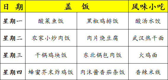 北大附中石景山学校西黄村校区中学晚餐2026年3月16日-2026年3月19日(13-19元)