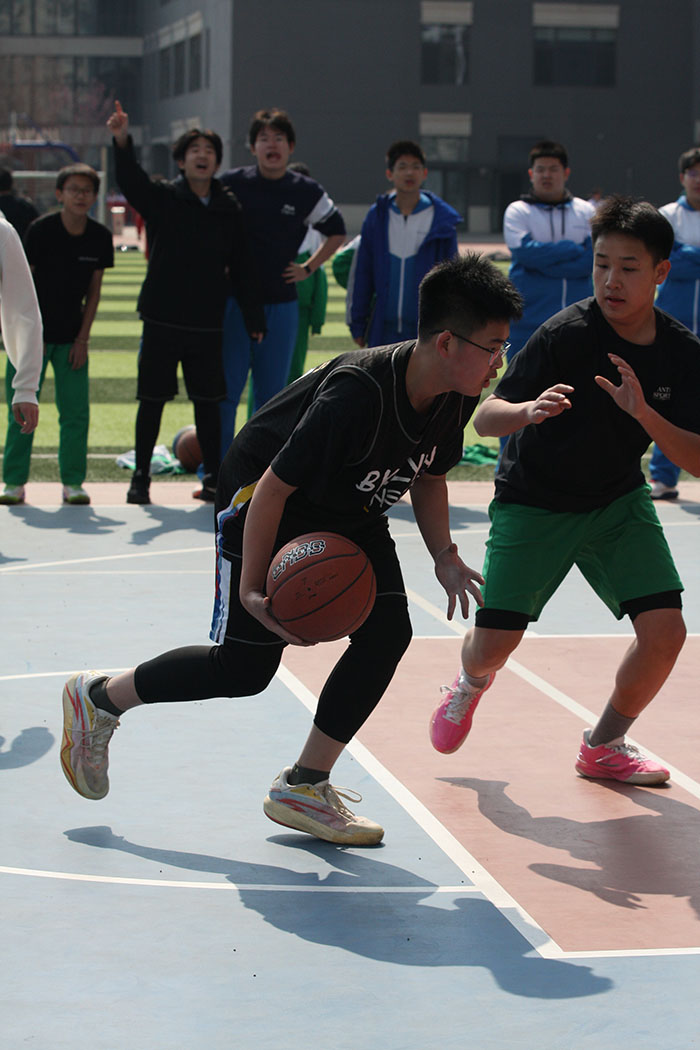 篮球联赛赛场,首轮对决便精彩纷呈。各班级代表队身着统一队服,精神抖擞地踏上赛场。抢断、传球、突破、投篮…… 队员们配合默契、奋勇争先,每一次精准传球都彰显着团队协作的智慧,每一次奋力起跳都凝聚着拼搏进取的力量。赛事严格遵循