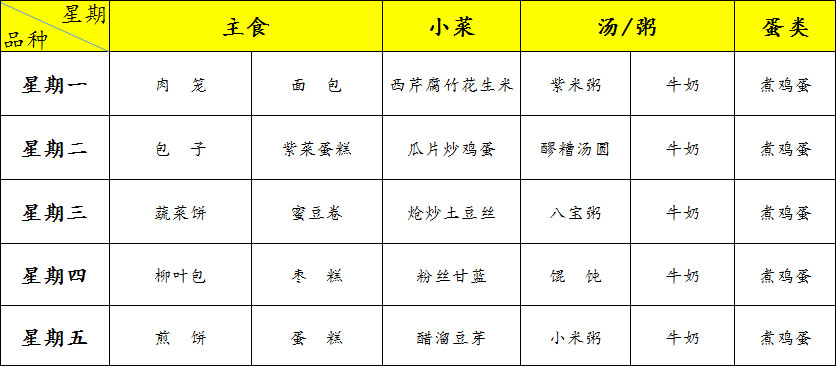 北大附中石景山学校西黄村校区小学早餐2026年3月30日-2026年4月3日