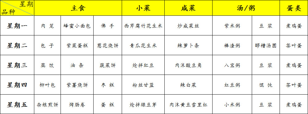 北大附中石景山学校西黄村校区中学早餐2026年3月30日-2026年4月3日