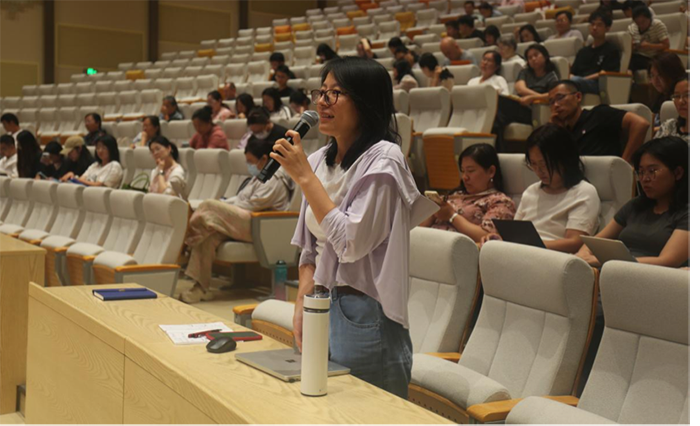 在创新人才培养方面,罗老师梳理国内拔尖创新人才培养政策导向,介绍4E认知模型等国际主流理论,提出教育教学需兼顾普及与拔尖的双轨路径,并明确教师应构建“基础+高阶”双层次能力框架,以适配未来教育对创新人才培养的需求,这与学校培养学生自主探究与创新能力的目标高度契合。互动环节中,针对老师提出的“教育结构化设计”、“人工智能赋能教育”等问题,罗老师结合理论和经验一一予以解答,进一步深化了教师们对教育创新的认知。