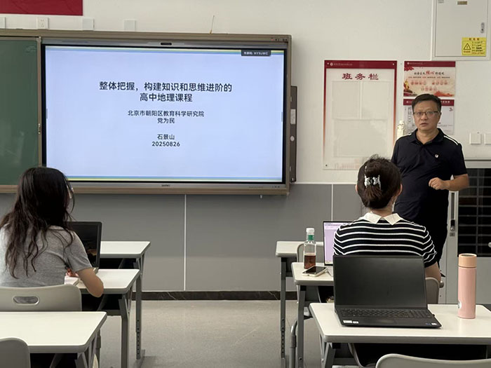 为深化地理课程改革,提升教学质量,2025年8月26日至27日,北京市正高级教师、北京市特级教师、北京市朝阳区教育研究中心地理教研室主任党为民老师莅临我校,开展了题为“整体把握,构建知识和思维进阶的高中地理课程”的专题指导。