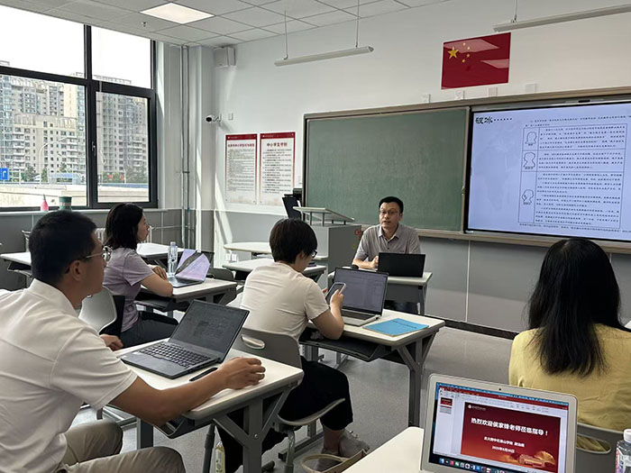 新学年开学在即,政治组老师们以饱满的热情投入到新学期准备工作中。2025年8月26日,学校请到了北京市海淀区教师进修学校政治学科教研员侯家锋老师为期一天的高端指导。侯老师是北京市骨干教师,北京市大中小学思政课一体化建设核心成员,北京市首批学校思想政治理论课“青年教学名师工作室”主持人。