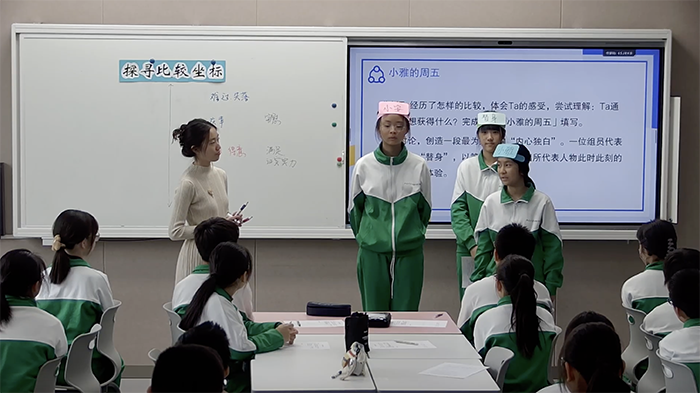 李依洋老师的初一心理课《探寻比较坐标》以“破解比较焦虑,建立积极自我认知”为核心,聚焦初一学生高频比较场景,通过使用心理剧技术等,促进学生的体验式参与,助力学生在自我探索中增强认同感。课程设计与实施中,教师始终坚持深耕心理育人,打磨成长课堂。过程中,政治教研组群策群力,团队成员共同听课指导、打磨教学环节。在团队支持与专家指导下,这节兼顾科学性与趣味性的心理课成功呈现,充分展现了我校心理健康教育的育人温度与专业深度。