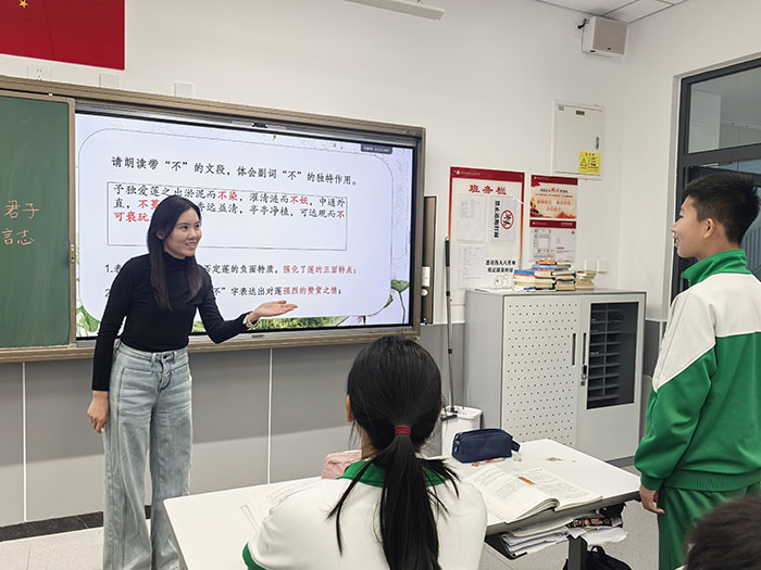 桑敏老师以“文言字词探析文本深意 多元方法激活思维课堂”为主题展开七年级上册第四单元《爱莲说》教学。在本课教学中,从《爱莲说》的副词运用切入,通过组词辨析、语境构建、字源探究等多元方法,引导学生深入把握作者的情感脉络,既提升了学生对文言文本的解读能力,又培养了自主探究的学习策略。在多次试讲磨课过程中,备课组教师共同研读文本、诊断学情,不断优化教学环节;区教研员更从理论高度深入指导,帮助课堂实现文本细读与人文素养的深度融合,为打造出一节既有语言训练实效,又具文化厚度的语文课而努力。