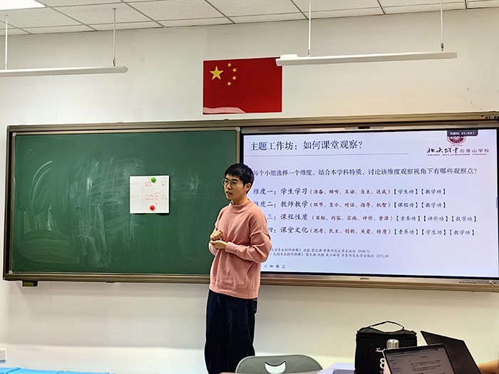 随后,王旭东老师主持开展 “如何高效开展课堂观察” 的主题研讨,带领大家解读了国家及市区层面关于教师基本功发展的系列支持政策,明确课堂观察作为教师核心基本功的重要地位,帮助大家深刻认识到精准观察对教学改进的重要意义。紧接着,王老师以“什么是课堂观察”“为什么要做课堂观察”“怎么科学进行课堂观察”