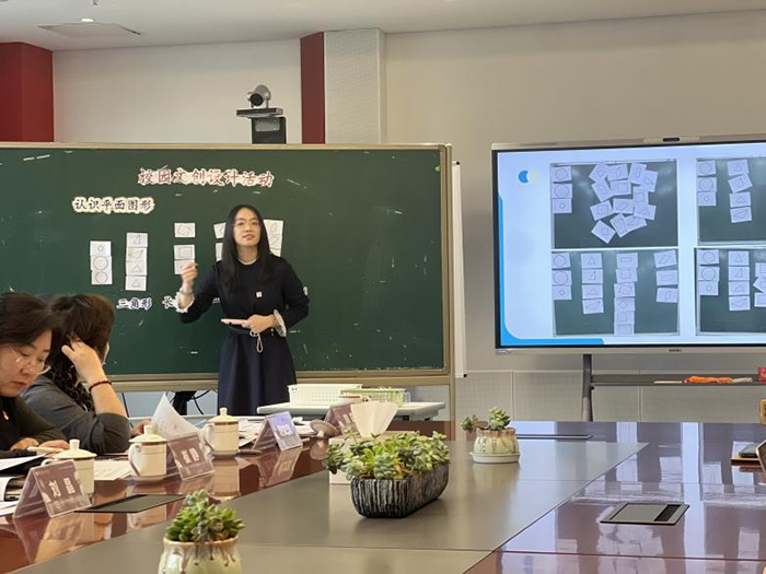 丁凡芮老师以 “校园文创设计活动” 为主题,聚焦空间观念培养,紧扣核心素养教学。通过图形识别游戏、钉板围图形等实操,学生在认知平面图形特征、实现几何思维进阶的同时,也深化了对校园文化的认同。