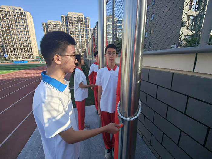 本周的升旗仪式由初三(4)班承担,升旗手是郑宇轩同学。国旗下,国旗班的同学们列成整齐的方队,在进行曲中昂首挺胸的前进,他们的步伐铿锵有力,既展现出了对国旗的敬畏,又展现出了青春的活力。