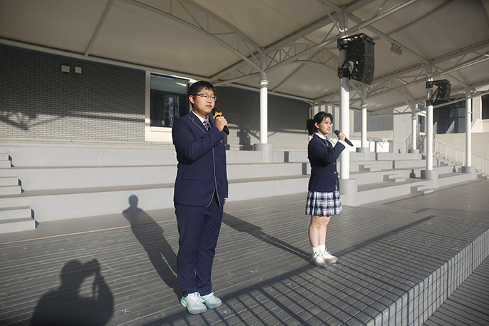 紧接着,杜书豪、张熙智、董思卿、毛心瑶同学给大家带来“以青春之名,赴强国之约”的主题演讲。演讲中,我们了解到青春的时光宝贵而短暂,我们站在历史与未来的交汇点上,既是国家发展的见证者,更应该成为国家进步的参与者。当我们把课堂上的专注、操场上的坚持、生活中的责任,都化作成长的力量,当我们把个人的梦想与祖国的未来紧紧相连,我们的青春就有了更厚重的意义,“强国有我”也不再是一句口号,而是融入血脉的信念与行动。
