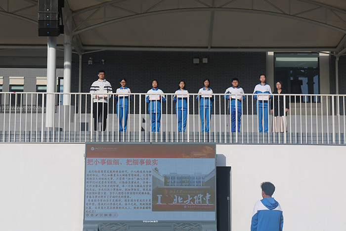 接下来,初三(4)班的班主任李柯欣老师进行了以“以青春之我,筑强国之基”为主题的国旗下讲话。李老师讲到,个人的成长与祖国的命运,早已如藤蔓与大树般紧密相连。无需即刻做惊天动地的大事,只需将“担当”融入日常:同学们以笔墨书写理想,以勤奋浇灌成长,让每一次作业都成为进步的阶梯,每一次参与都成为责任的见证。当我们把小事做细、把细事做实,便是在为强国积蓄力量;当个人理想与家国情怀同频共振,青春与事业便有了穿越时光的重量。