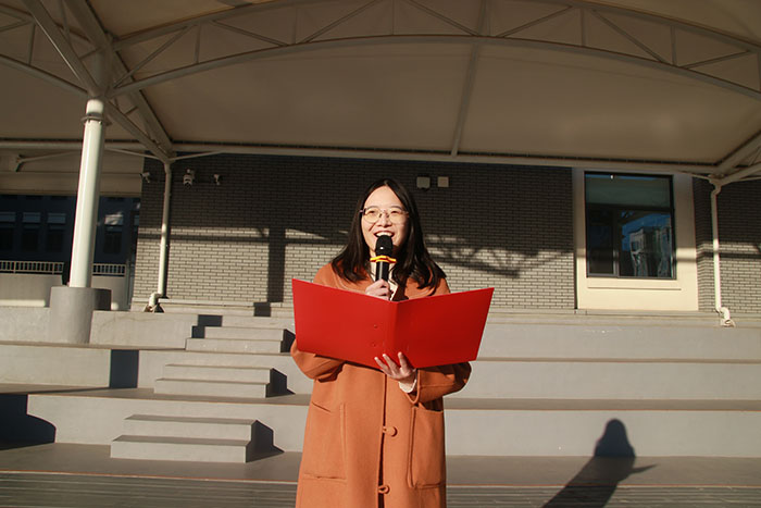 之后班主任徐春丽老师在国旗下讲话中提到:重阳节不仅是登高赏菊的诗意传统,更是“当下的责任”。她鼓励同学们以“陪伴、体贴、传承”为笔,在新时代的画卷上续写“孝亲敬老”的文明长卷。