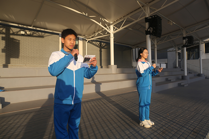 首先进行的是庄严的升旗仪式,杨妍同学担任升旗手。随后翟家鸿、王诗琪、傅帅和王悦心四位同学发表演讲。随着“双十一”购物节的临近,各类促销信息纷至沓来,他们直面现实,向全体同学发出深刻叩问:是溃堤于欲,还是截流以理?演讲中,同学们发出倡议:理性消费,是“量力而行”而非“透支家庭”的成熟担当;是物尽其用,而非盲目占有。在这个“双十一”,一起做一次理性的审视,用智慧和远见,构筑健康的生活方式,用行动传承勤俭美德,做一个对自己负责、对家庭感恩、对社会有担当的新时代青年!