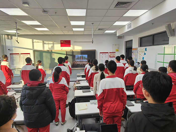 2025年12月1日,北大附中石景山学校第14周升旗仪式上,高一(3)班师生围绕“弘扬宪法精神,争做法治少年”主题,通过主持和演讲的形式,将宪法的温度与力量融入青春成长的语境,让“宪法不是遥远条文,而是成长守护”的理念走进师生心间。